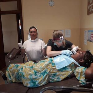 Nazywam się Sonia Janusz. Jestem lekarzem dentystą. Stomatologią zajmuję się od 4 lat. W 2019 roku przez trzy miesiące byłam wolontariuszką na misji w Kamerunie. Pracując w dwóch ośrodkach prowadzonych: w Ayos i Esseingbot, leczyłam pacjentów, którzy zgłaszali się z problemami stomatologicznymi. Moi pacjenci przemierzali często wiele kilometrów, aby otrzymać pomoc. Problemy z którymi się zgłaszali były bardzo różne – wykonywałam przeglądy dzieciom, leczyłam zęby, usuwałam te, których nie można było uratować, a także zajmowałam się innymi patologiami w jamie ustnej.