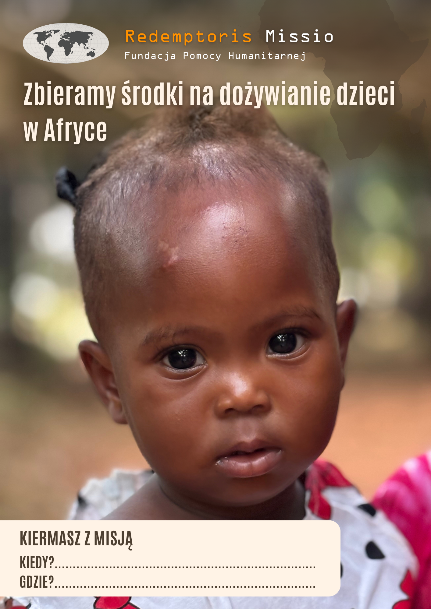 Rozwieś go w wybranej placówce i rozpocznij zbiórkę na rzecz afrykańskich dzieci. “Kiermasz z misją” pomoże je dożywić!